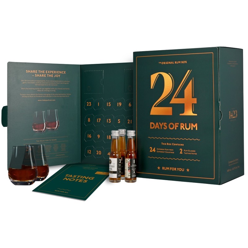 Ontdek de wereld van rum met de 24 DAYS OF RUM kalender. Deze unieke adventskalender neemt je mee op een smaakvolle reis langs 24 verschillende landen. Elke dag opent een nieuwe deur naar een andere rumcultuur en smaakbeleving.