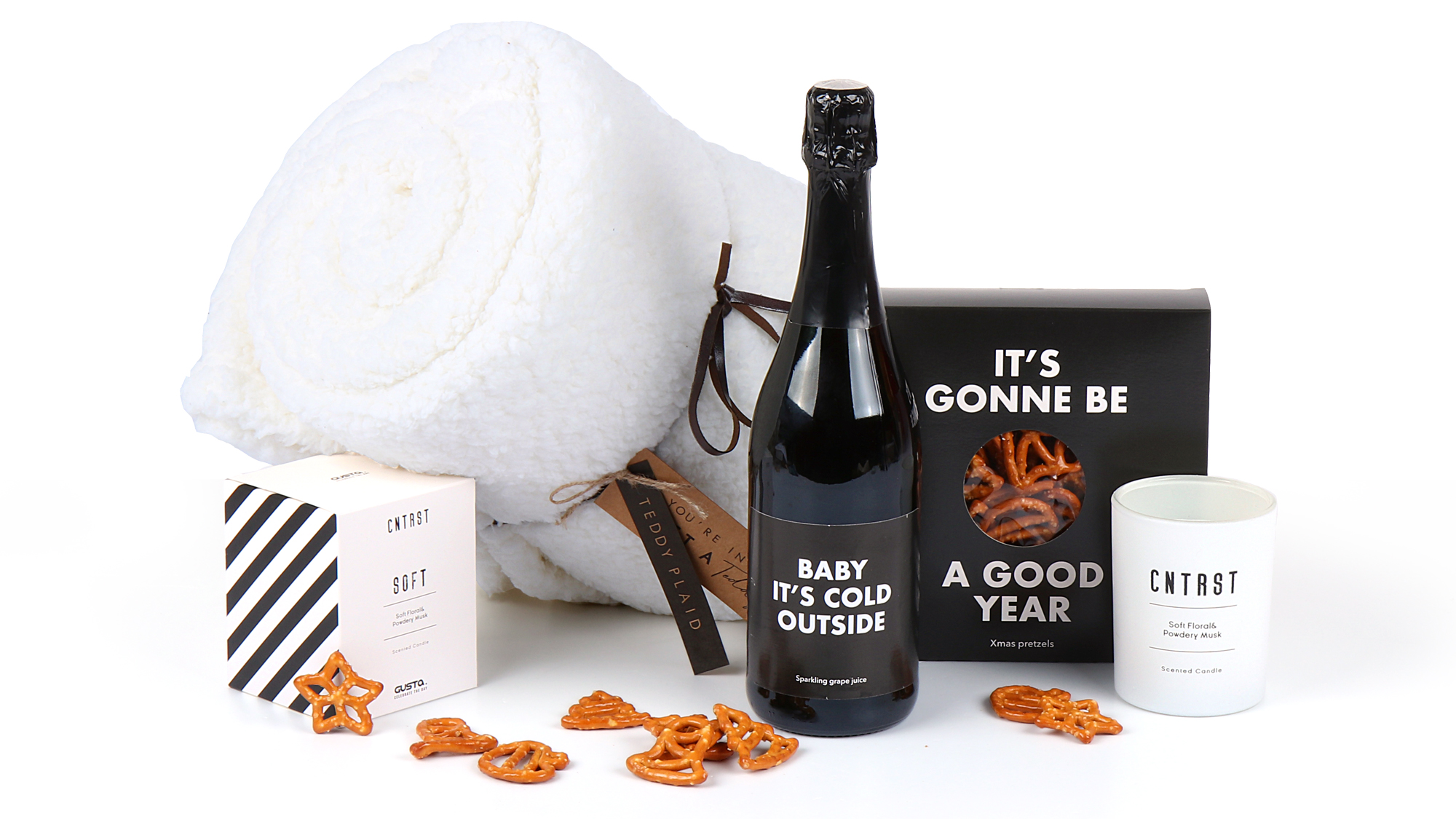 Wanneer de winterkou toeslaat, is er niets fijner dan wegkruipen onder een zachte plaid met een warme geurkaars erbij. Het kerstpakket “Baby it’s cold outside” brengt precies die warmte en gezelligheid naar je huis. Dit pakket combineert comfort met smaakvolle lekkernijen voor een compleet wintergevoel.