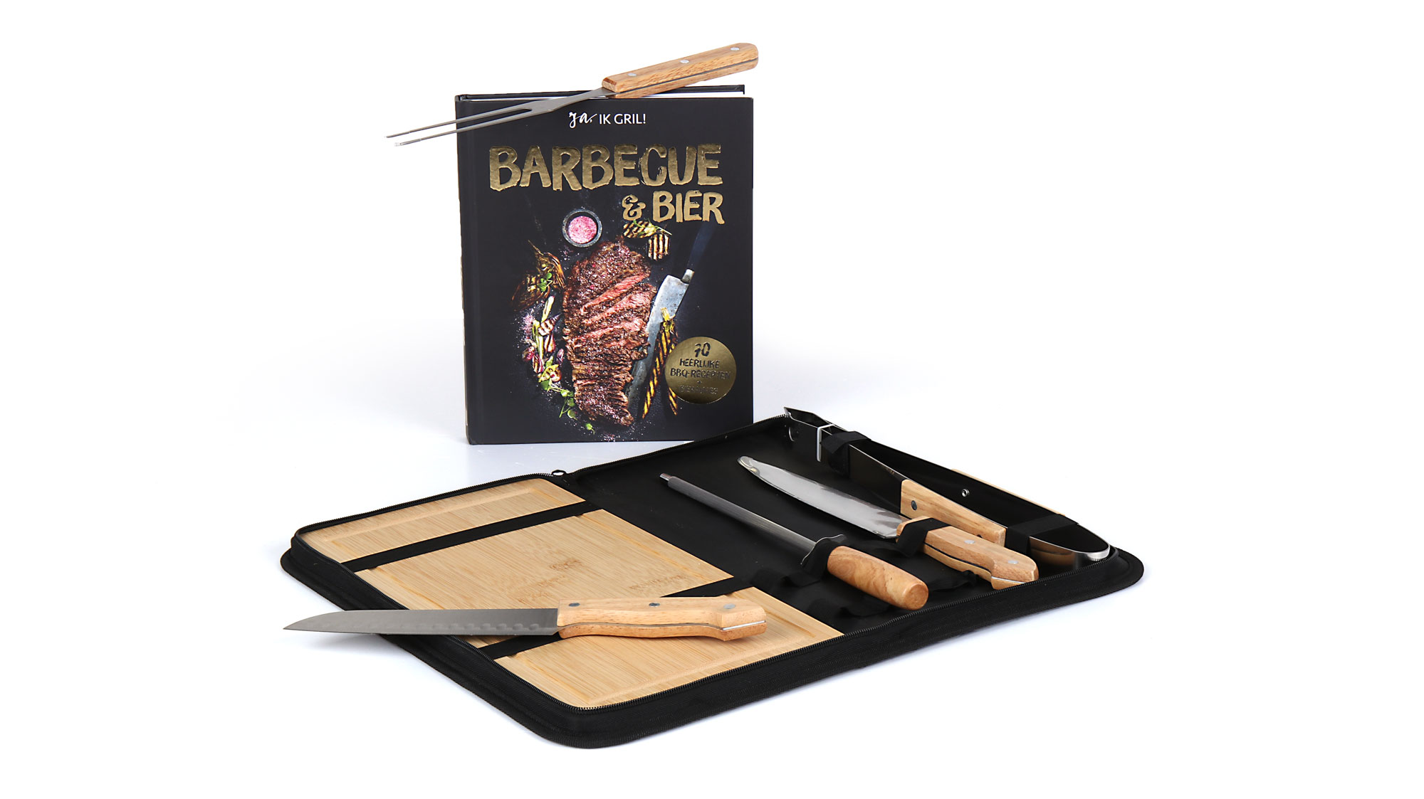 Het BBQ & Bier kerstpakket combineert alles wat je nodig hebt voor de perfecte barbecue-ervaring. Dit stoere cadeau bestaat uit een compleet barbecueset in een praktisch meeneemetui en het uitgebreide “Barbecue & Bier” boek van 176 pagina’s. De robuuste barbecueset bevat een snijplank, messen, grote vork, vleestang en slijpstaaf, allemaal netjes opgeborgen in een etui met rits.