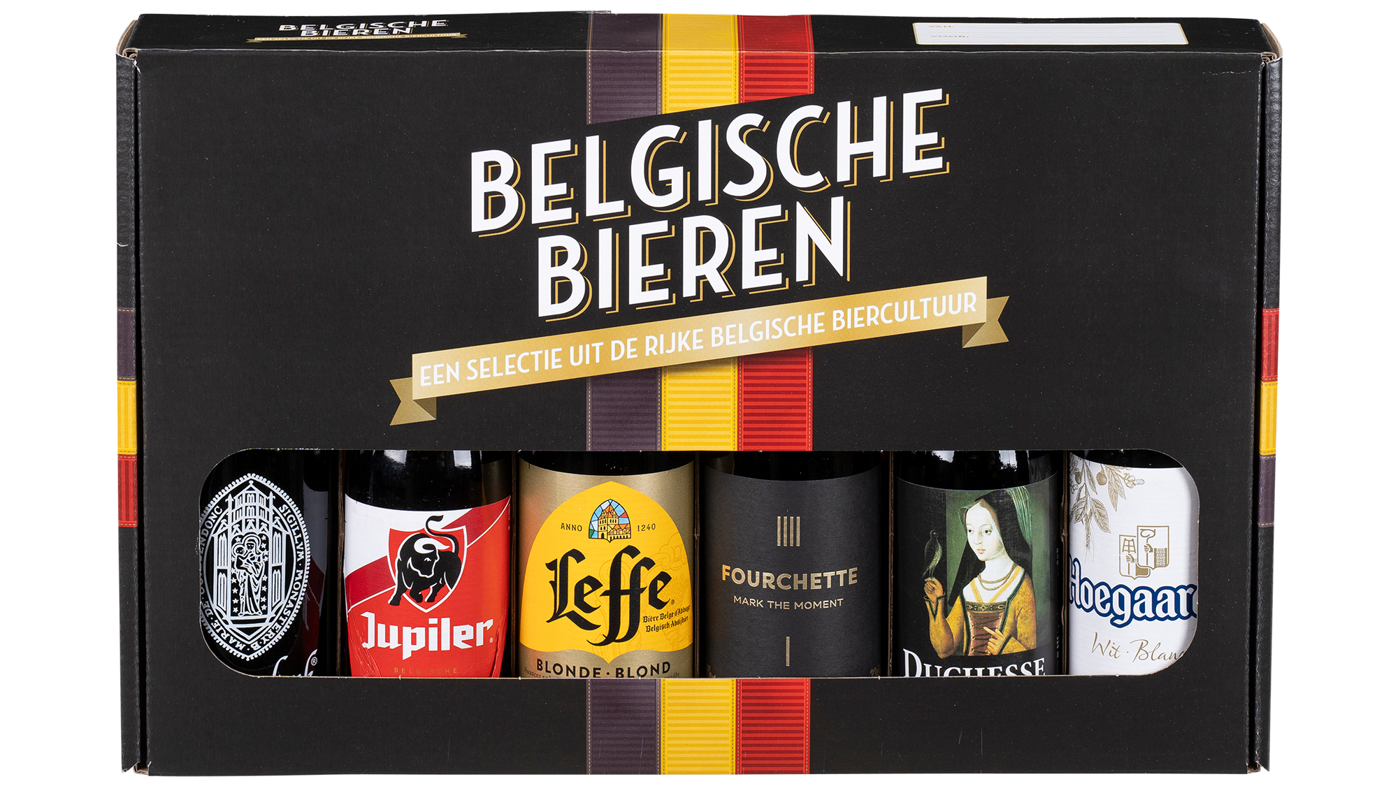 Het pakket bevat Jupiler Pils als klassieke vertegenwoordiger, aangevuld met de elegante Duchesse de Bourgogne en de karaktervolle Fourchette. De populaire Leffe Blond zorgt voor een perfecte balans, terwijl Hoegaarden Wit de selectie compleet maakt. Alle flesjes van 33 cl zijn vakkundig verpakt in een stijlvolle Belgische geschenkdoos die de waarde van je cadeau onderstreept.