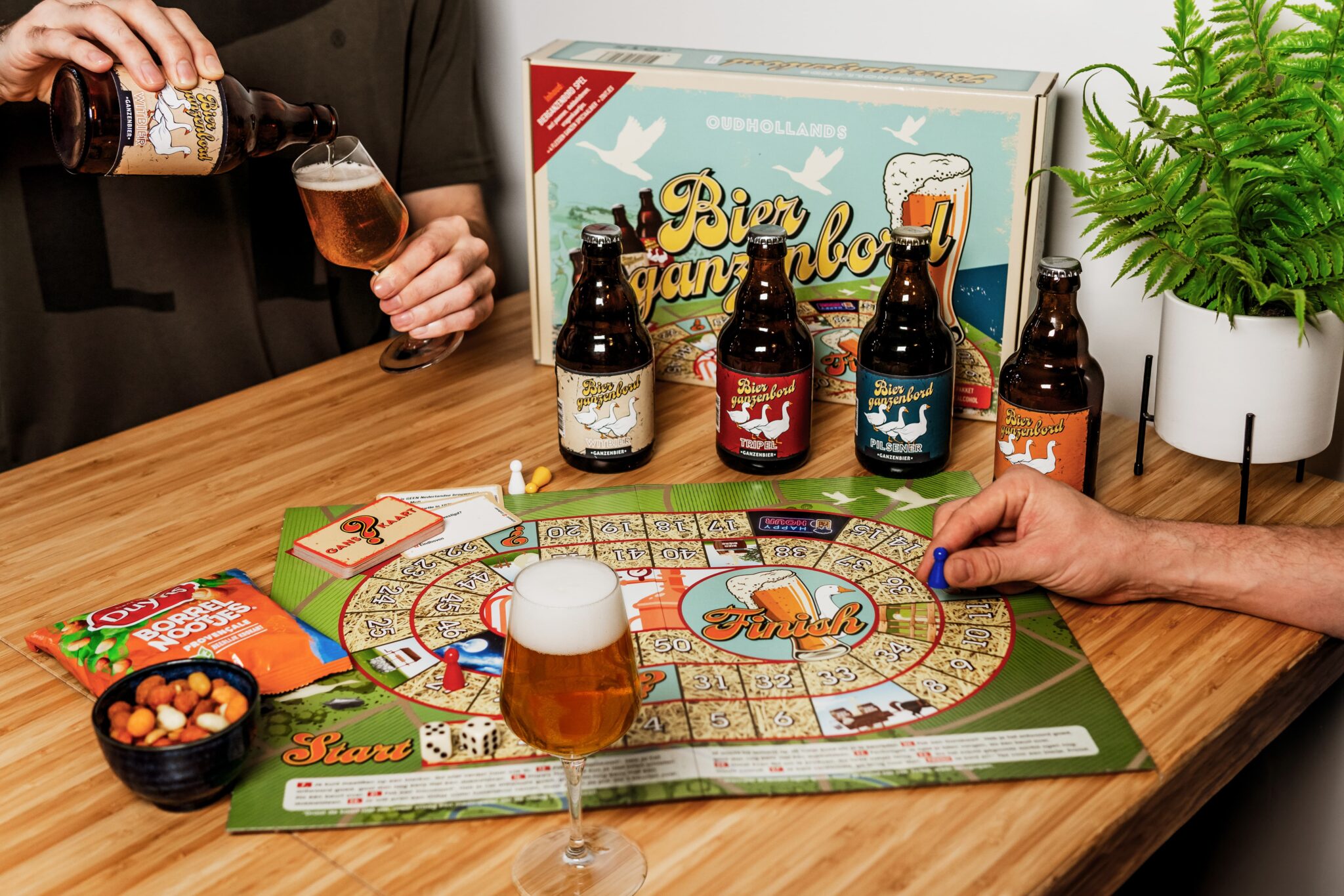 Met 30+ jaar ervaring in kerstpakketten garanderen wij kwaliteit en tevredenheid. Bestellen kan al vanaf 1 stuk en dankzij onze eigen inpakcentrale en productie ontvang je snel en zorgvuldig verpakte pakketten. Het Bier Ganzenbord spel transformeert elke bijeenkomst in een memorabele ervaring vol uitdagingen, lachen en natuurlijk… bier!