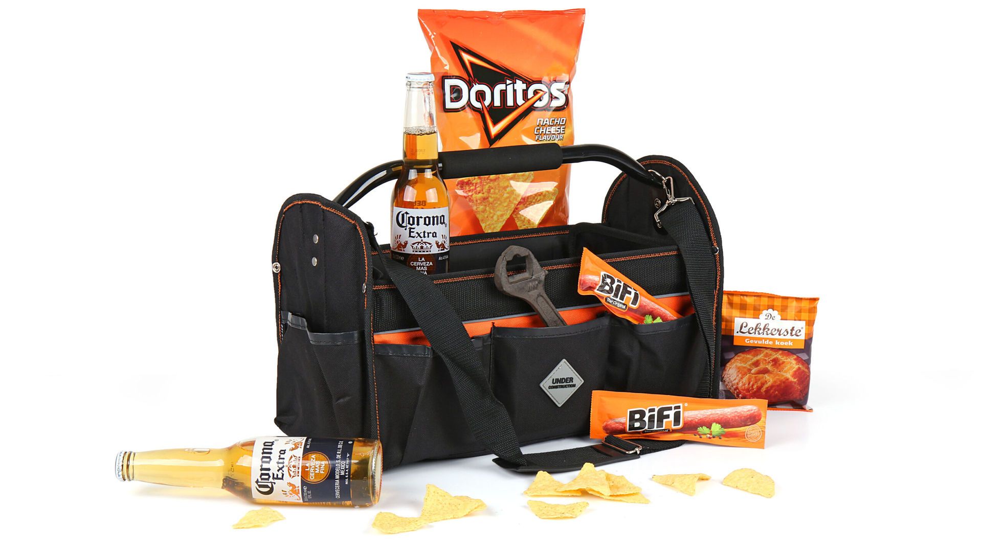 Het hart van dit pakket is de oranje tool case under construction. Deze stevige case biedt niet alleen opbergruimte voor gereedschap, maar komt ook gevuld met een zorgvuldige selectie van lekkernijen. De robuuste bahco bieropener van gietijzer zorgt ervoor dat je altijd de perfecte opener bij de hand hebt. Twee Corona goud zwart biertjes van 35,5 cl maken de bouwvakvakantie compleet en bieden de verdiende ontspanning na een dag hard werken.