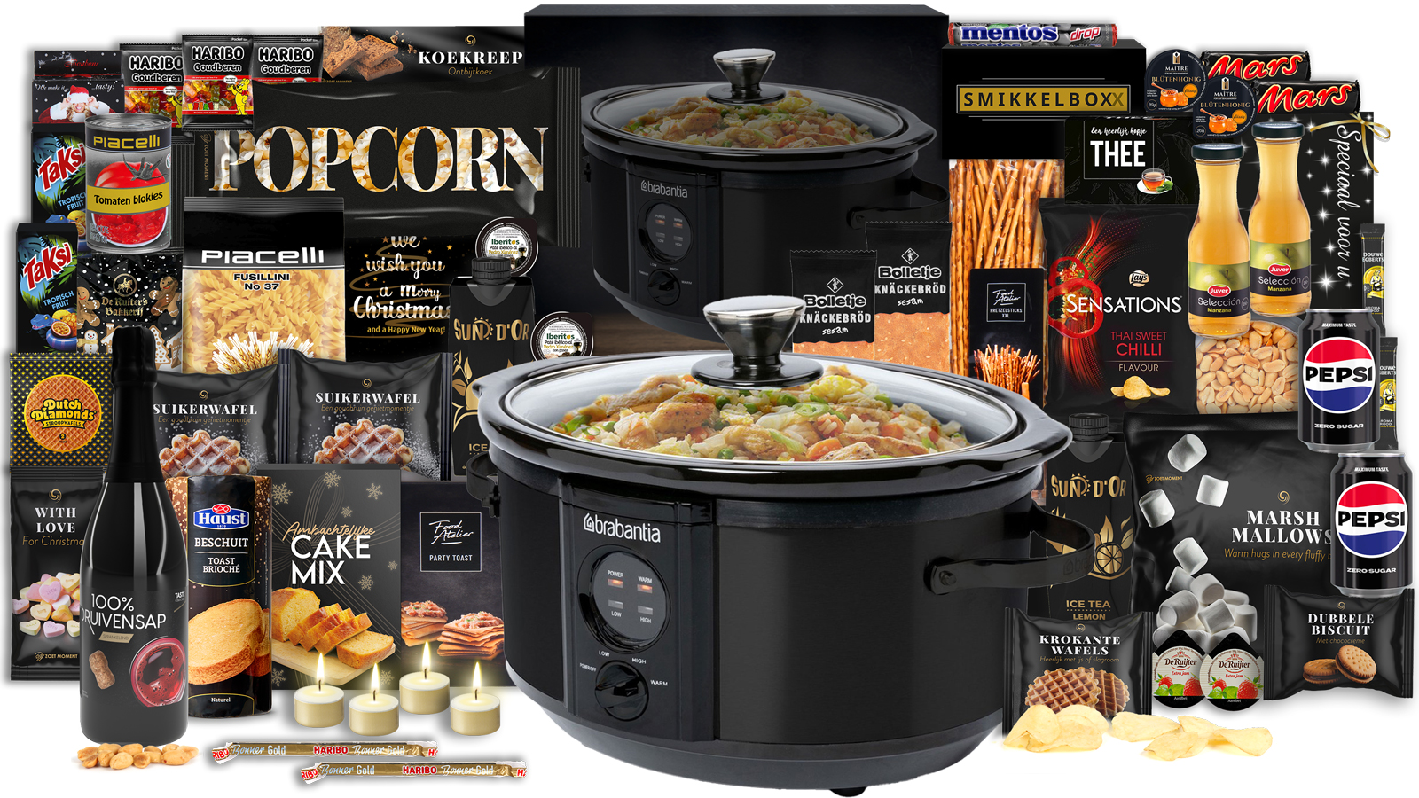 Dit royale zwarte kerstpakket is een feest voor iedere kookliefhebber. De Brabantia Slowcooker 3,5 Ltr is perfect voor het bereiden van de lekkerste gerechten. Van zacht gegaard stoofvlees tot geurige curry’s. Omringd door een overvloed aan alcoholvrije lekkernijen in stijlvol zwart, is dit kerstpakket het ultieme cadeau voor wie houdt van gemak, smaak en feestelijke gezelligheid. Bestel hem snel, dan heeft u het maar mooi alvast geregeld voor Kerst.