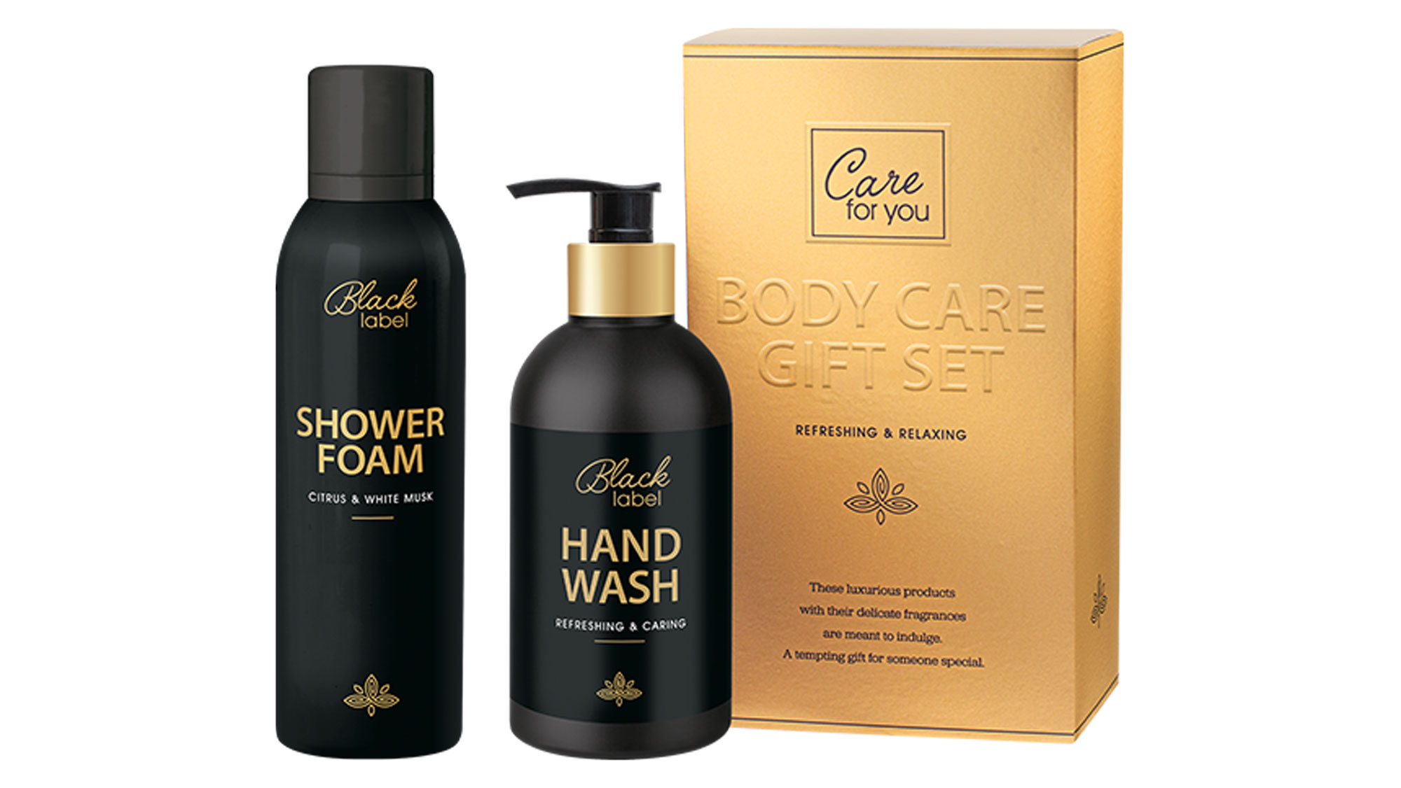 Het giftset bevat een showerfoam van 150 ml en een handwash van 250 ml, beide verpakt in een gouden giftbox. De zwarte uitvoering straalt klasse uit en past in elke badkamer. De showerfoam zorgt voor een zachte reiniging tijdens je douche, terwijl de handwash je handen hygiënisch schoon houdt zonder uit te drogen.