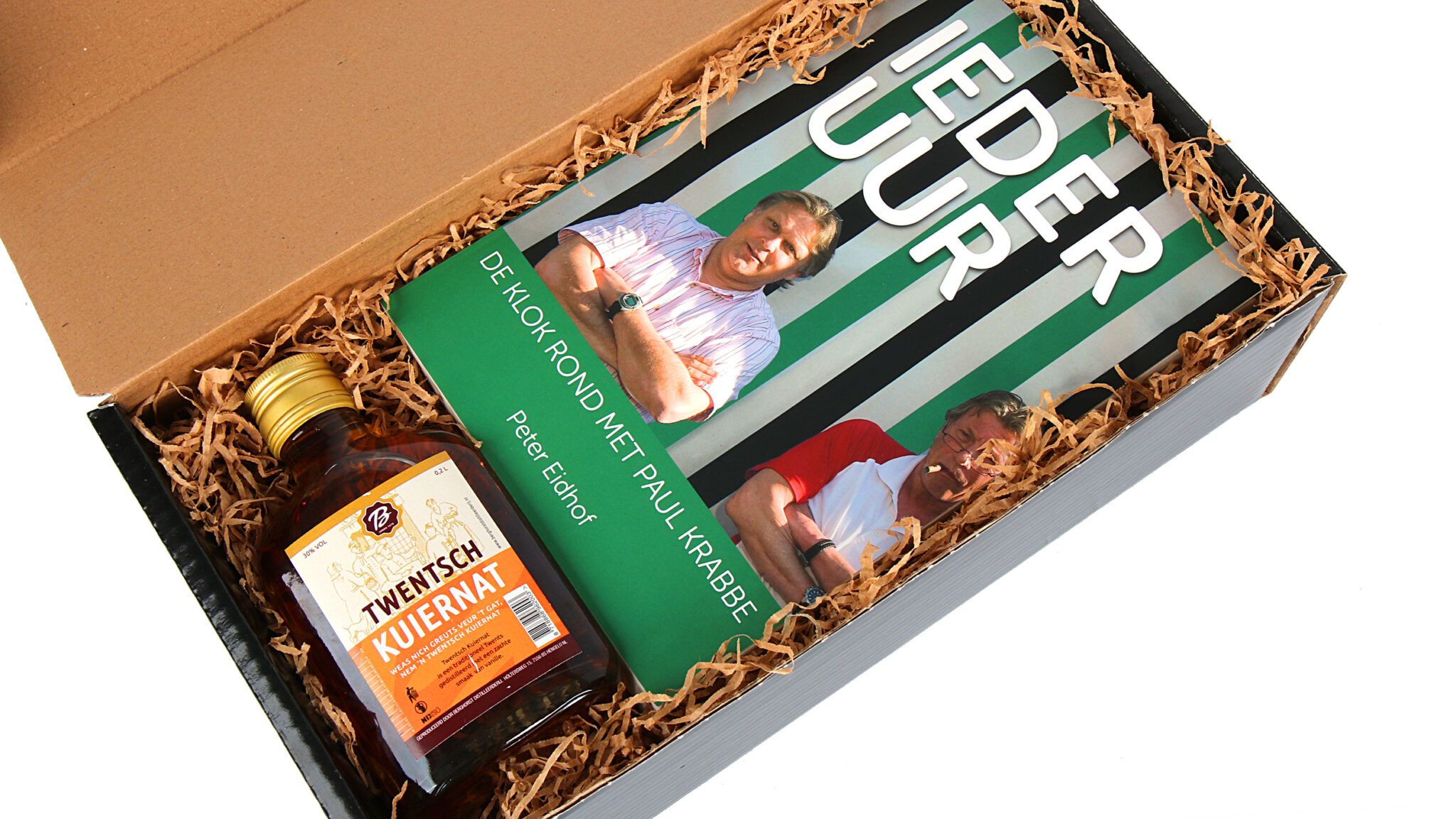 Naast het boek geniet je van 20 cl Twentsch Kuiernat, een authentieke streekdrank die de Twentse cultuur perfect weergeeft. Deze combinatie van kennis en smaak zorgt voor een complete beleving van de Twentse voetbaltraditie.