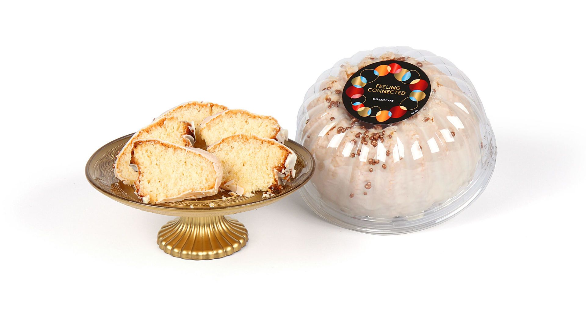 Feeling Connected combineert smaak met stijl in één elegant kerstpakket. Dit doordacht samengestelde geschenk brengt mensen samen rond een gouden taarthouder met heerlijke tulband cake. Perfect voor wie houdt van zoete momenten en mooie presentatie.