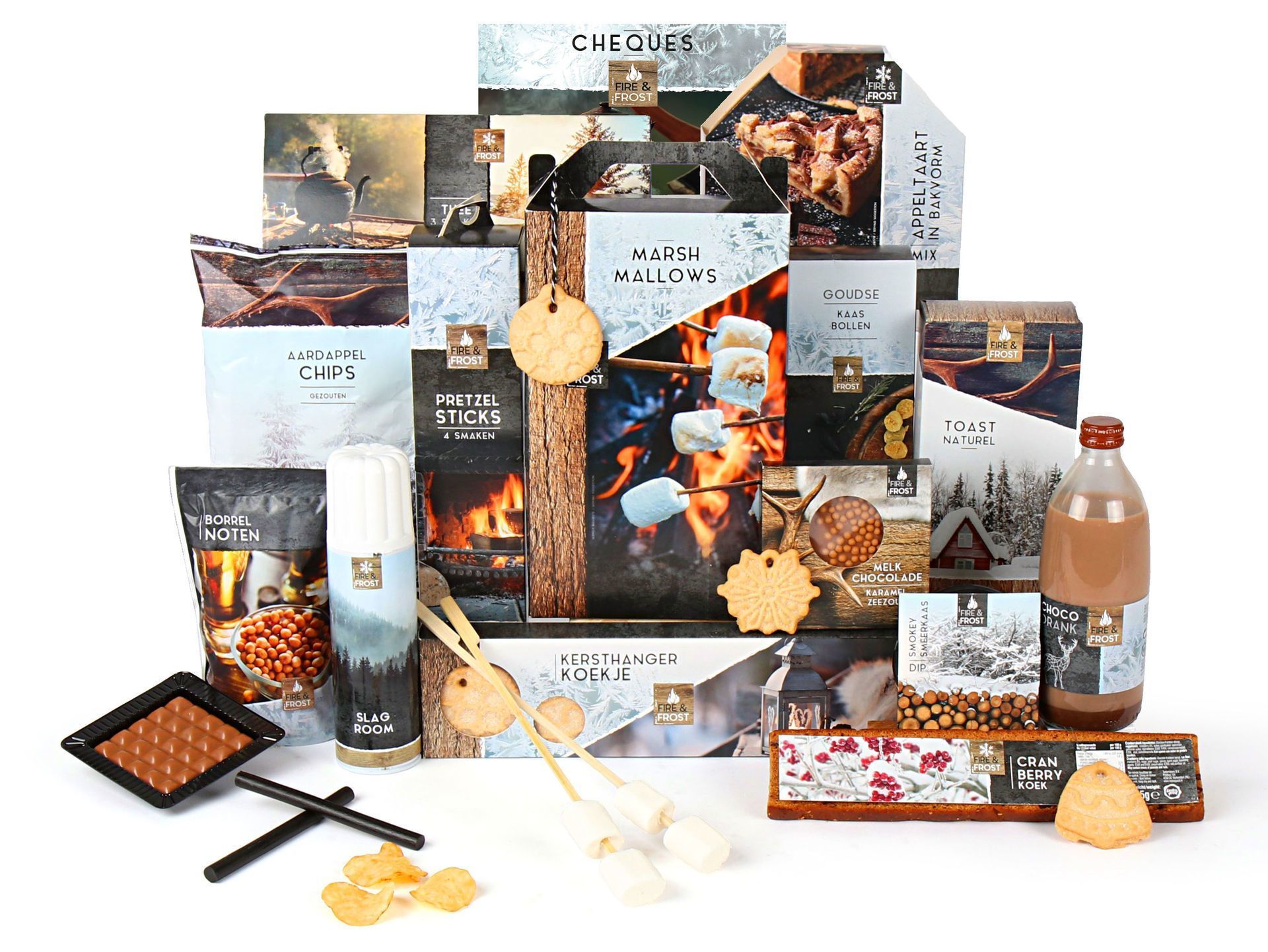 Het Fire & Frost XL kerstpakket brengt de perfecte winterse sfeer in huis. Met z’n allen om de vuurkorf buiten, marshmallows aan een stokje en verwarmen maar. Zo heerlijk genieten met de familie van deze bijzondere feestdagen. Dit uitgebreide pakket combineert warme verwennerijen met koude lekkernijen voor een complete kerstbeleving.