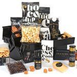 Het hart van dit geschenk bestaat uit een rijke selectie van lekkernijen die perfect op elkaar zijn afgestemd. De oude snijdbare kaas van 130 gram vormt samen met de mosterd dille saus en vijgen chutney een verfijnde combinatie voor de kaasliefhebber. De salty crackers XL en kaaskoekjes van Black & White bieden de ideale basis voor deze smaken. Voor de zoetekauwen zorgen de vanilla fudge, chocolate chip koekjes en choco pinda’s voor pure verwennerij, terwijl de zoete popcorn een speelse toets toevoegt.