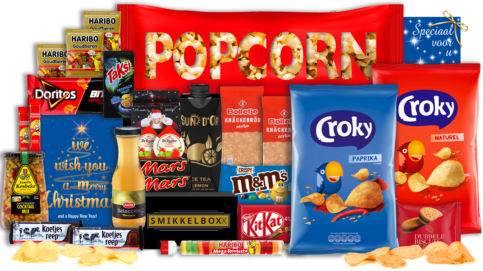 Het snoepgedeelte brengt pure vreugde met Mars repen, Koetjesrepen, M&M’s crispy en de populaire Haribo Mega Roulette rol. Voor de hartige trek zorgen Croky chips in zowel naturel als paprika variant, knapperige Doritos Bits honey bbq en verse popcorn. Deze combinatie garandeert voor elk moment de juiste smaak.
