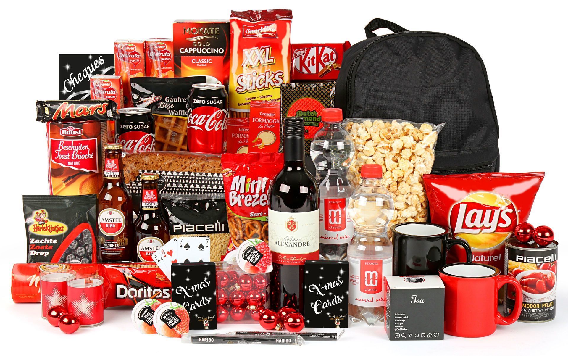 Het Lekker Smullen Onderweg XL is de perfecte kerstpakket voor wie van variatie houdt. Deze praktische zwarte rugzak (30×10.5×39,5 cm) bevat een zorgvuldig samengestelde mix van lekkernijen en verrassingen die je overal mee naartoe kunt nemen.