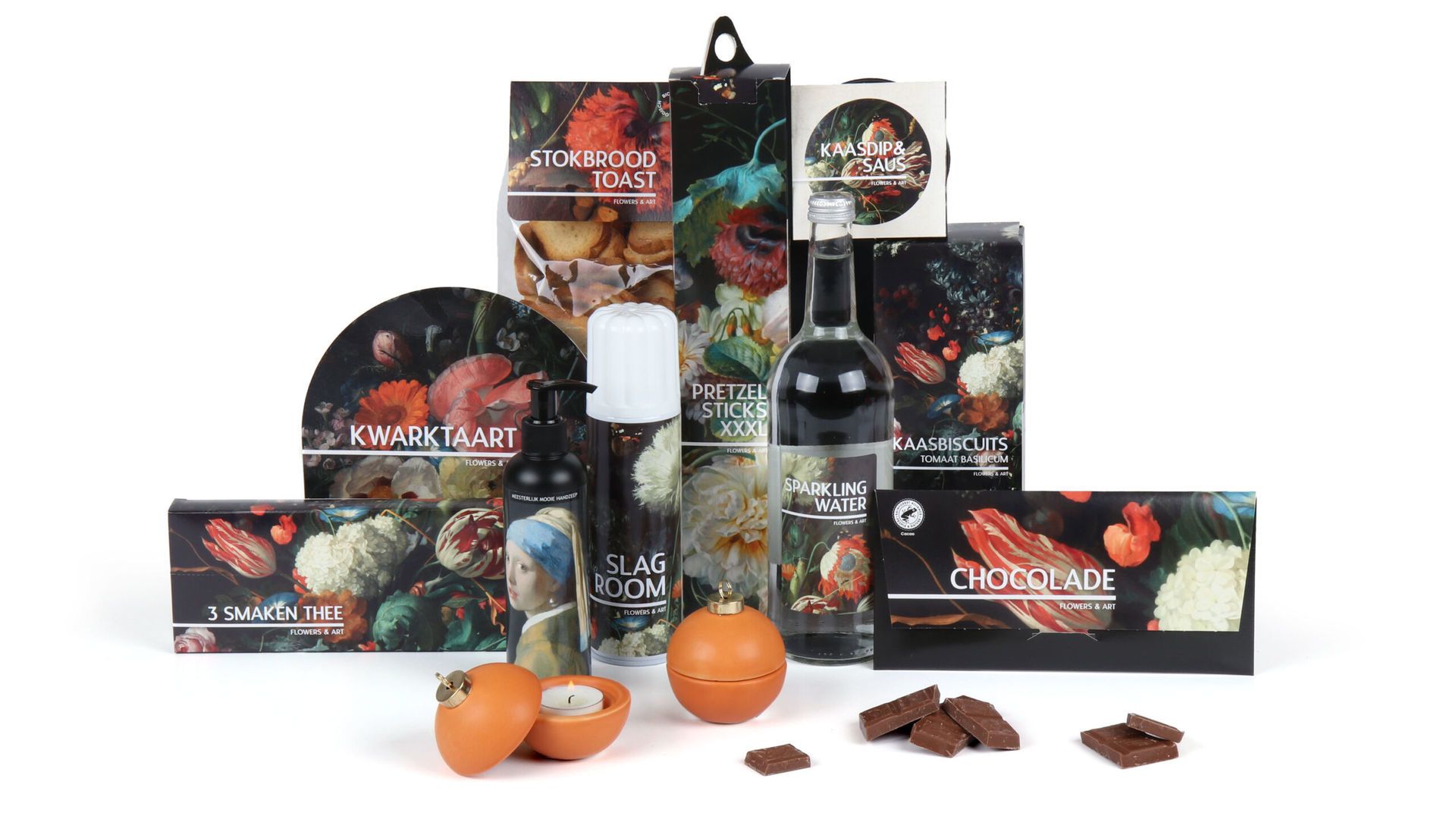 Begin je dag met de elegante handzeep van 250ml die dagelijkse verzorging tot een luxe ervaring maakt. De twee kerstbal theelichthouders creëren direct de perfecte kerstsfeer in huis. Voor de culinaire liefhebber bevat dit pakket de Flowers kwarktaart in handige bakvorm, compleet met slagroom van 250ml. Combineer dit met het luxe stokbrood toast, de smaakvolle kaasdip en de kaasbiscuits met tomaat en basilicum voor een verfijnde borrelplank.