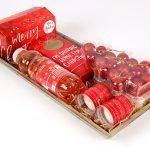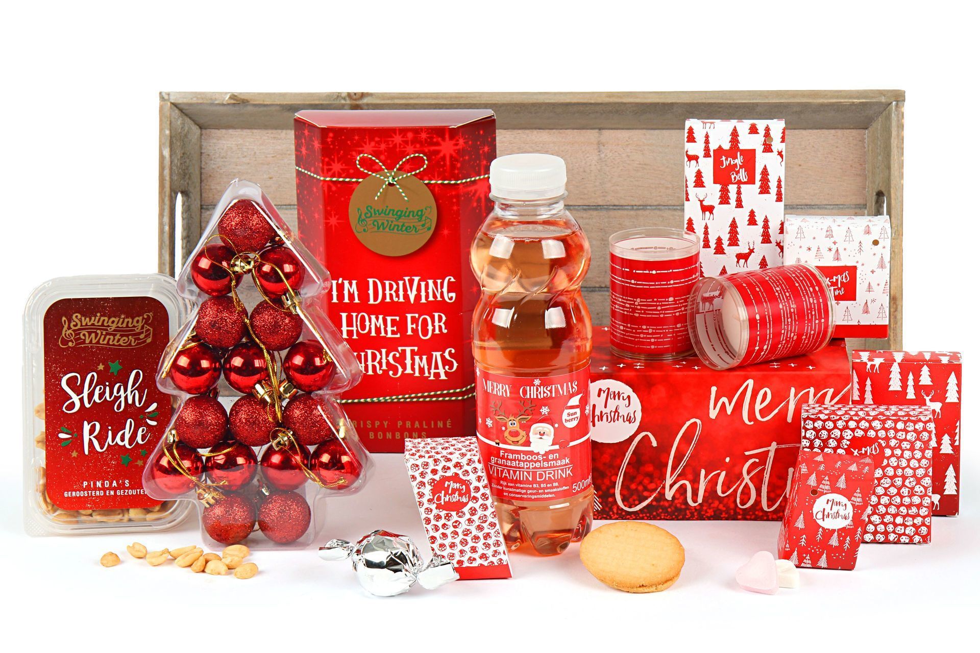 De elegante houten serveertray vormt de basis van dit kerstpakket. Hierin vind je twee sfeervolle sparkle lights die voor warme kerstverlichting zorgen, samen met zeventien glanzende mini kerstballen die het geheel feestelijk maken. Het Red collection mini kerstpakketje van 74,4 gram bevat lekkere kerstlekkernijen, aangevuld met 150 gram gezouten pinda’s voor de hartige smaak.