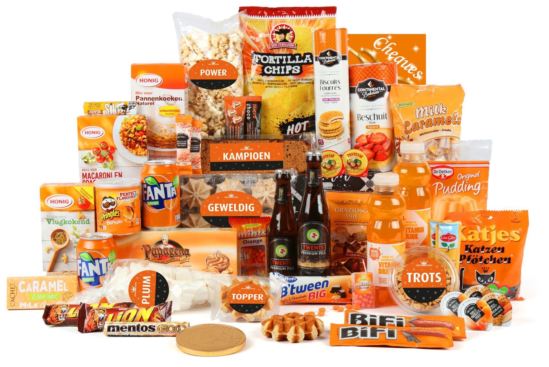 Het pakket opent met verfrisssende dranken zoals Twents pils en Fanta Orange, aangevuld met vitaminewater mango-guave voor de gezonde noot. Voor de zoetliefhebber zijn er Lion repen, suikerwafels en melkchocolade met caramel en zeezout. Hartige momenten worden verzorgd door tortilla chips met kaassmaak, Pringles paprika en een Bifi original.