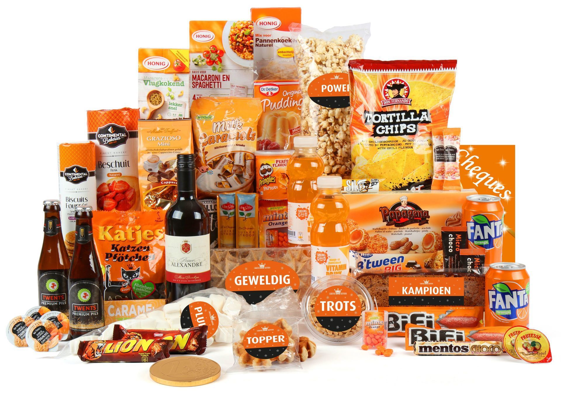 De zoetliefhebbers komen volledig aan hun trekken met Lion repen, suikerwafels, melkcaramels en Katjes kattepootjes. Voor de hartige trek bevat het pakket tortilla chips met kaassmaak, Pringles paprika, Bifi original en een uitgebreide pindamix. De Honig producten zoals elleboogjes en pannenkoekenmix zorgen voor complete maaltijden thuis.