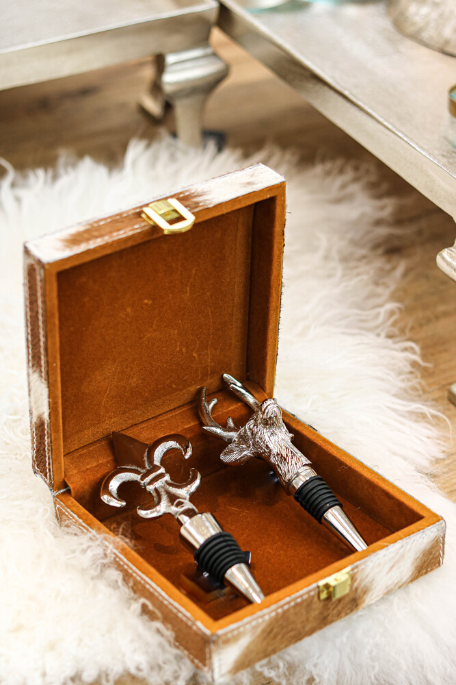 Twee prachtige kandelaren in geweivormen van 33 en 24 cm creëren samen met de Leeff dinerkaarsen een warme, gezellige sfeer. De Contesse Prosecco magnum fles van 1,5 liter zorgt voor feestelijke momenten, terwijl de bijgeleverde wijnstopper Kariboe van 17 cm de Prosecco vers houdt.