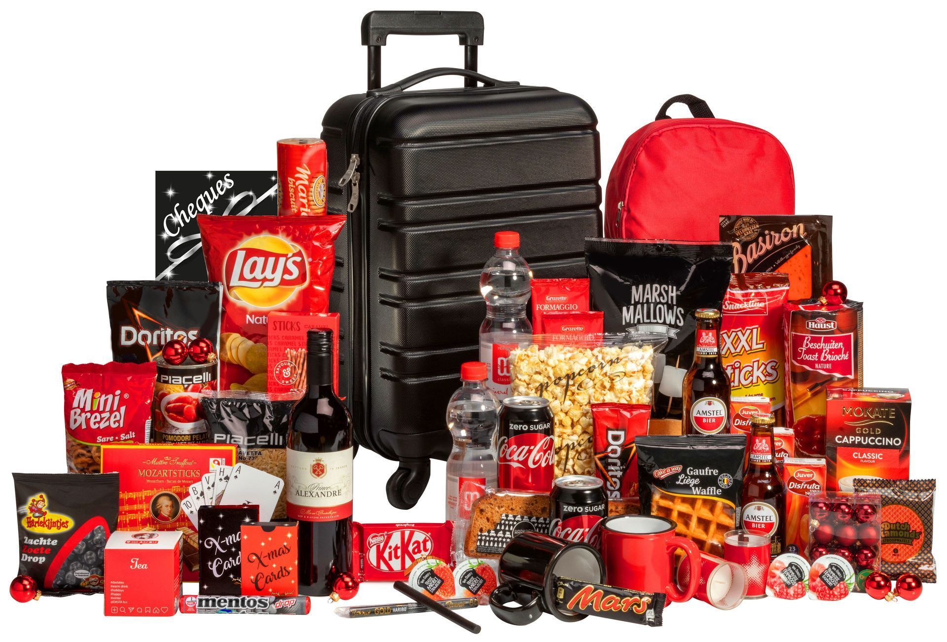 Dit complete kerstpakket combineert het beste van twee werelden: een complete reisuitrusting met luxe snacks en vakantiecheques voor een onvergetelijke ervaring. De handige cabin size trolley en bijpassende rode rugzak maken dit pakket perfect voor de reislustige relatie die graag onderweg is.