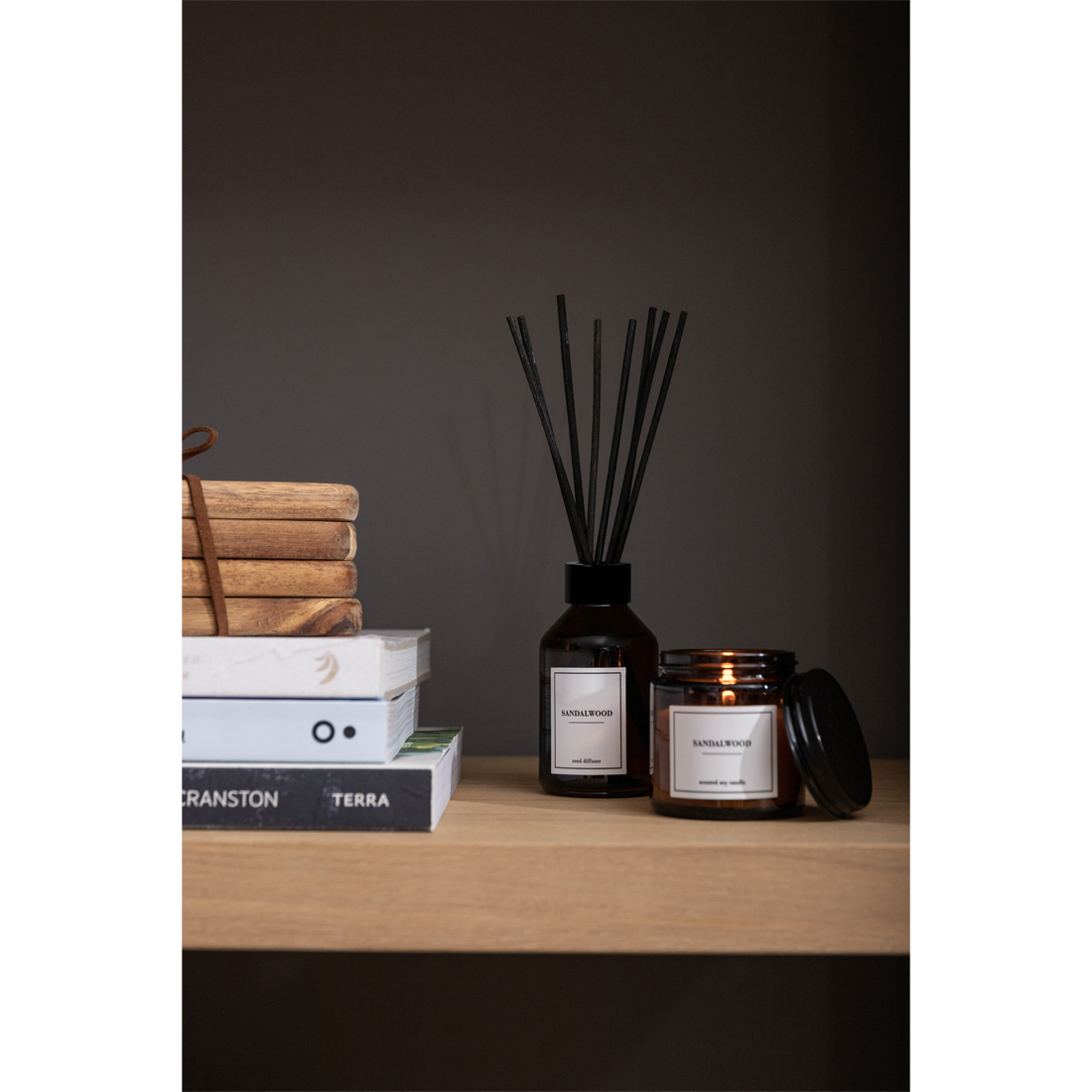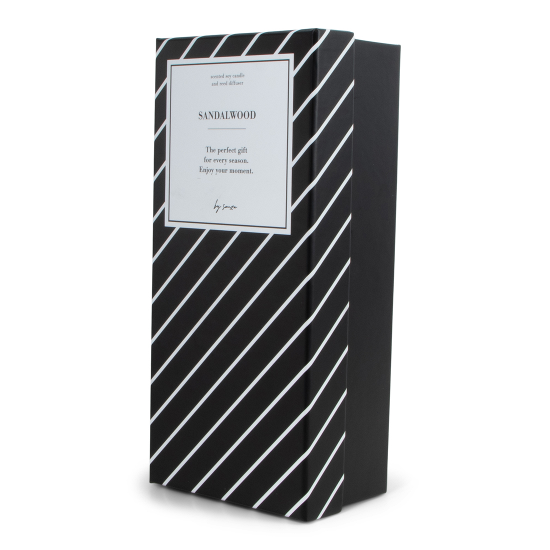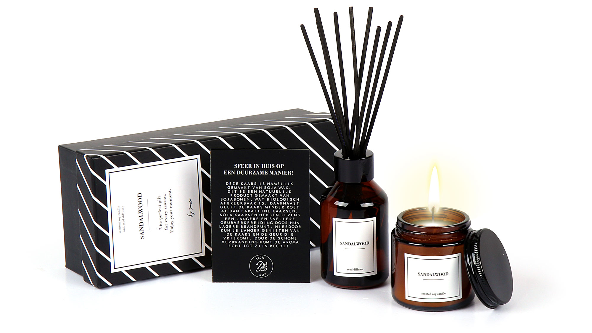 In deze feestelijke giftbox vind je een hoogwaardige geurkaars van natuurlijke soja wax samen met een elegante diffuser inclusief geurstokjes. Beide producten zijn afgestemd op de karakteristieke sandalwood geur – zoet, rijk, warm en houtachtig. De soja wax zorgt voor een schonere verbranding met minder roet en een superieure geurverspreiding die sneller en langer aanhoudt dan traditionele kaarsen.