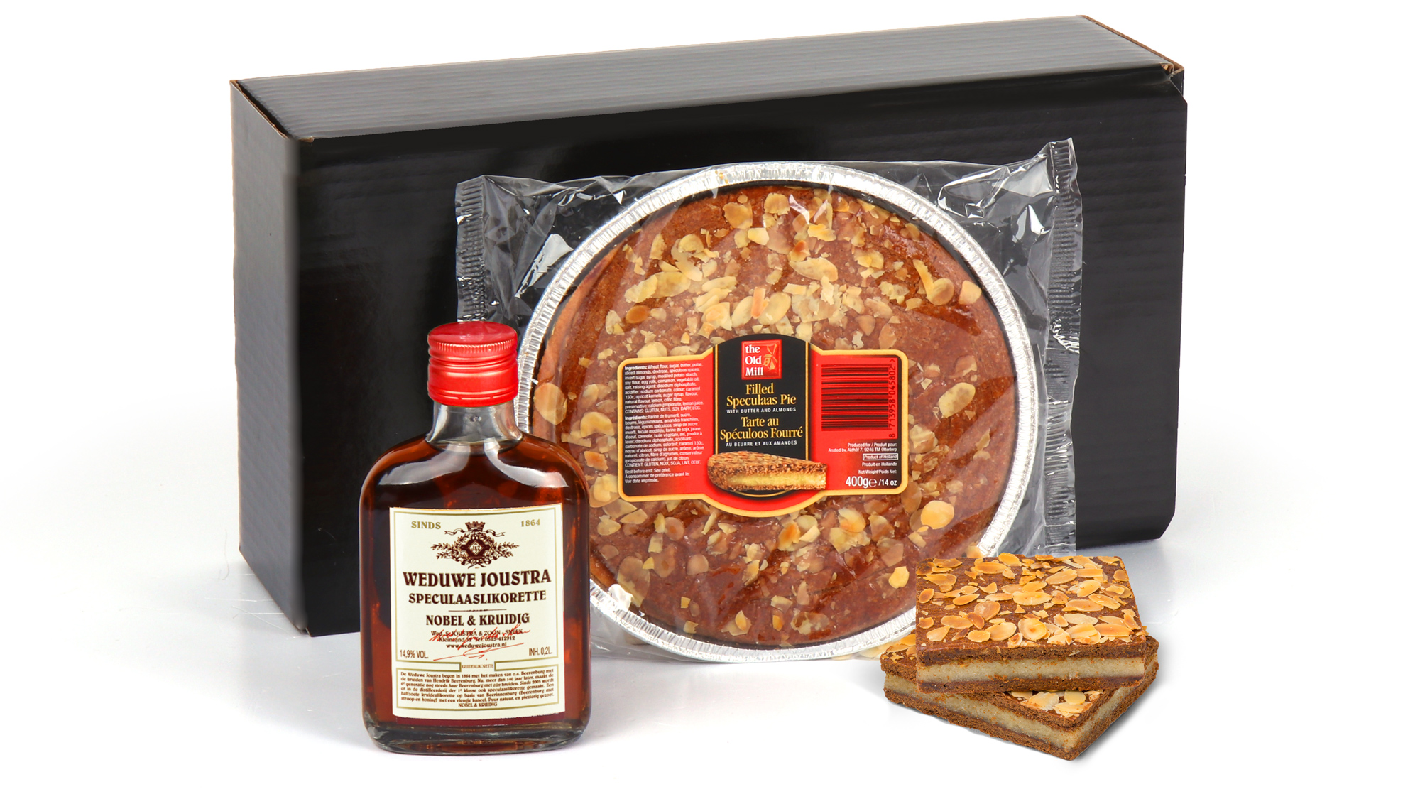 In de feestelijke geschenkdoos vind je een rijk gevulde speculaastaart van 400 gram, gebakken met de authentieke kruiden die speculaas zo herkenbaar maken. Daarnaast ontdek je de Joustra speculaaslikeur van 20 cl, een romige likeur bereid volgens een traditioneel recept. Deze zachte likeur draagt de volle smaak van speculaaskruiden en vormt de perfecte afsluiting van een gezellige maaltijd.