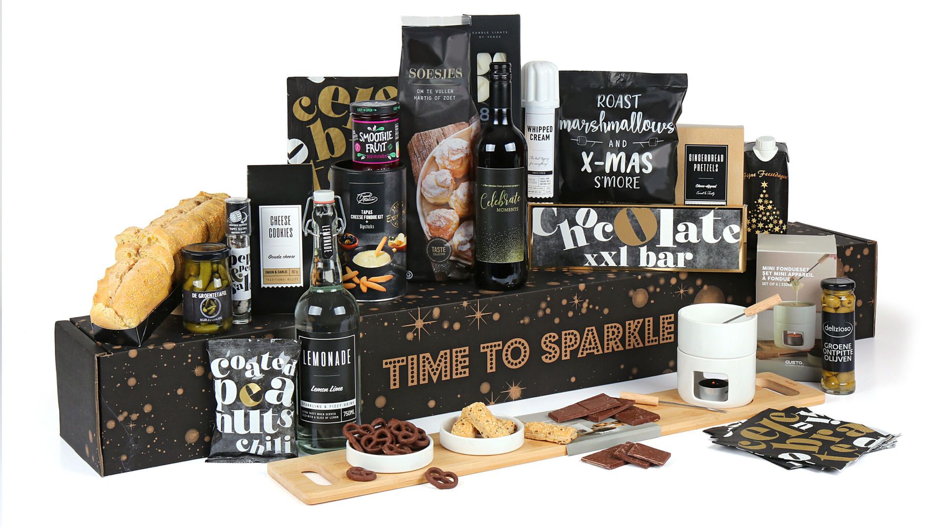 Het Sprankelende Kerst pakket brengt alles samen wat je nodig hebt voor onvergetelijke feestelijke momenten. Dit complete kerstpakket combineert smaak, gezelligheid en kwaliteit in één prachtige feestdoos.