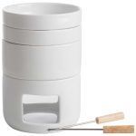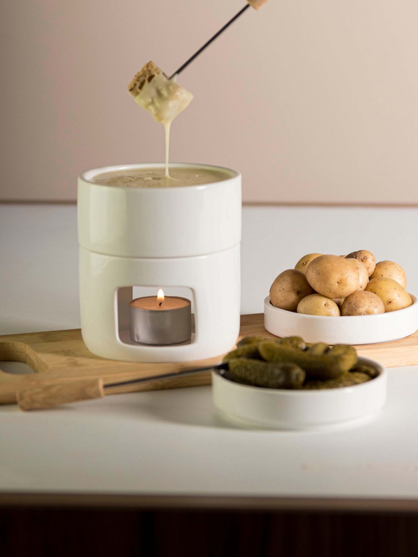 In het hart van dit pakket vind je een elegante bamboe serveerplank van 75×12 cm en een complete Gusta fondueset voor 6 personen. De bijgeleverde Food atelier tapas kaasfondue kit met dipsticks zorgt voor een warme, gezellige sfeer aan tafel. Theelichtjes van Senza houden je fondue op de perfecte temperatuur.