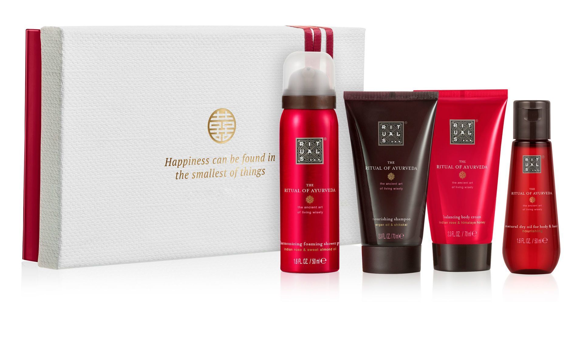 The Ritual of Ayurveda Rebalancing Treat brengt de eeuwenoude Indiase Ayurveda filosofie naar je dagelijkse verzorgingsroutine. Dit luxe verzorgingspakket is speciaal samengesteld om innerlijke harmonie te herstellen en balans te vinden door het reinigen en voeden van lichaam en ziel. Perfect als exclusief kerstpakket voor werknemers die waardering verdienen.
