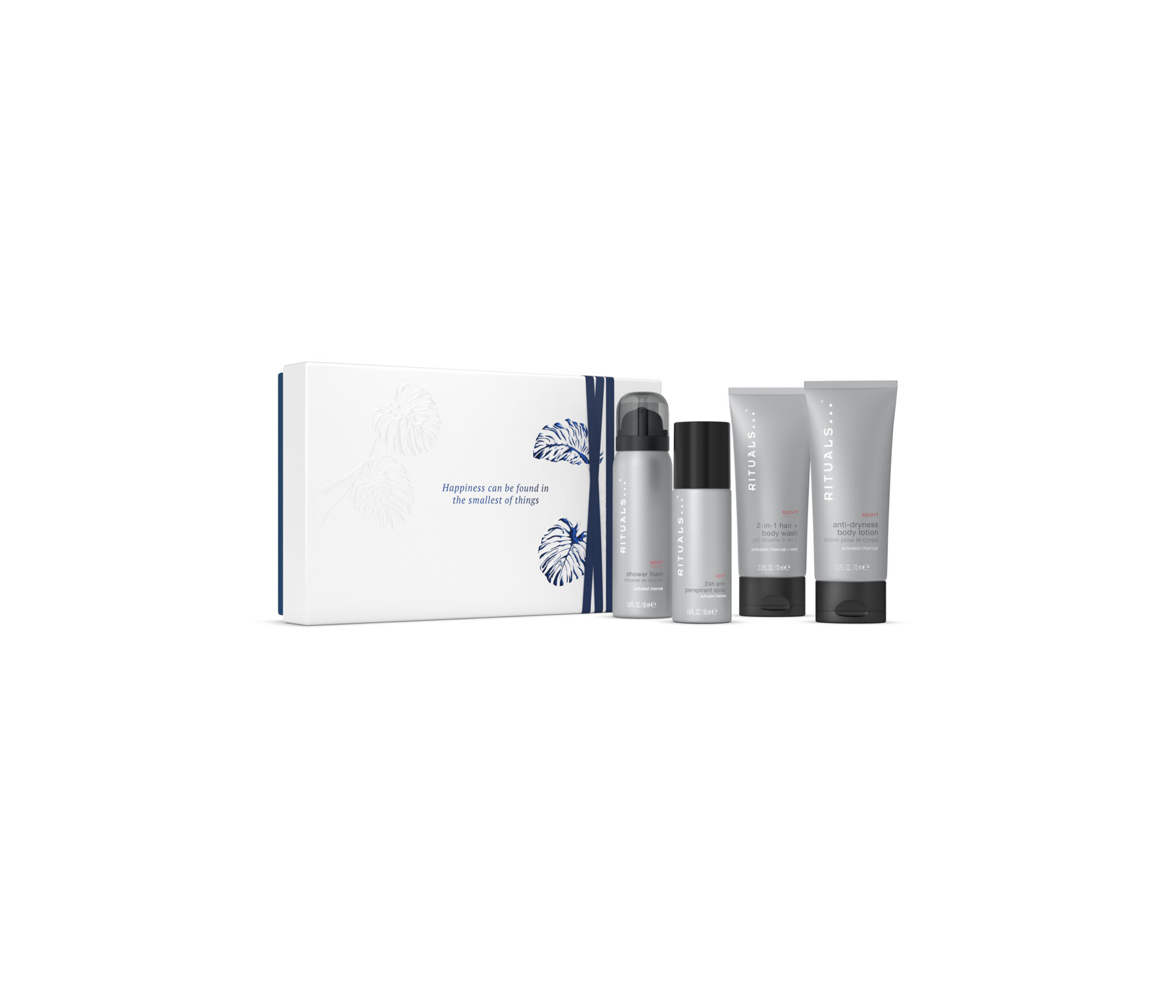 Inhoud van dit pakket The Ritual Sport- Small Gift Set 2025/2026 Sport body lotion, 70 ml Sport foaming shower gel 50ml Sport anti-perspirant spray, 50 ml Sport 2-in-1 shampoo & bodywash, 70 ml