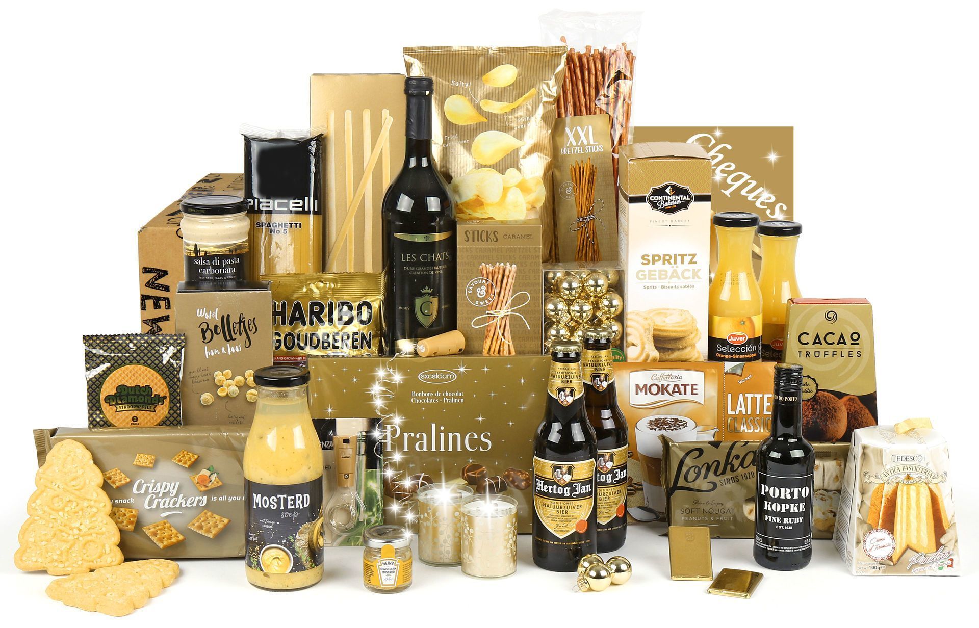 De Topper in goud is een feestelijk kerstpakket dat indruk maakt. Dit luxe pakket combineert kwaliteitsproducten met een gouden thema. Dankzij onze eigen productie en 30+ jaar ervaring in kerstpakketten garanderen we topkwaliteit. Je kunt dit pakket al vanaf 1 stuk bestellen.