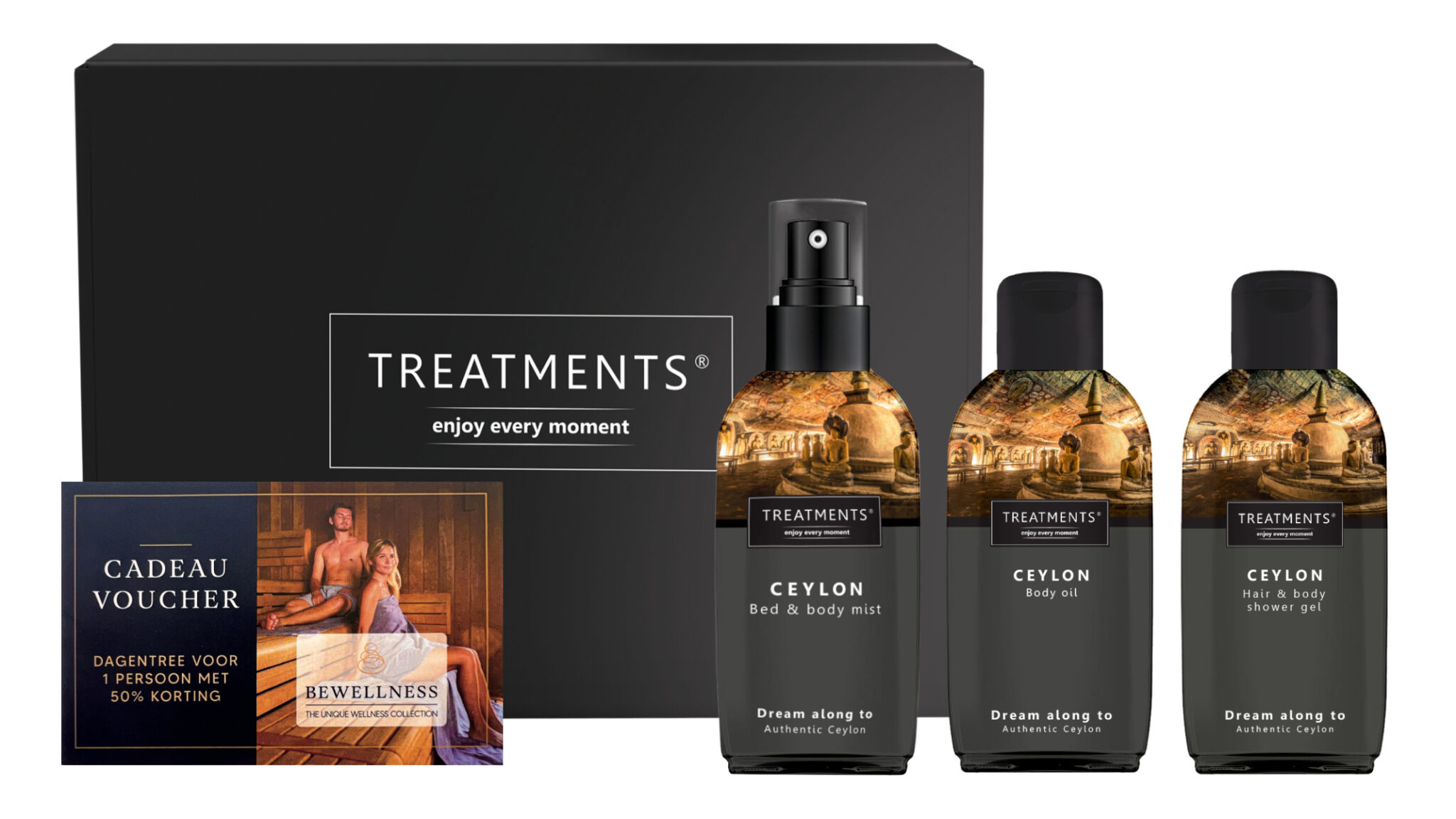 De Treatments® Giftbox Body & Fragrance Ceylon biedt een complete wellnesservaring in een stijlvolle cadeauverpakking. Deze luxe giftbox combineert drie hoogwaardige verzorgingsproducten met de exotische Ceylon-geur, aangevuld met een waardevolle kortingsvoucher voor een dagje wellness.