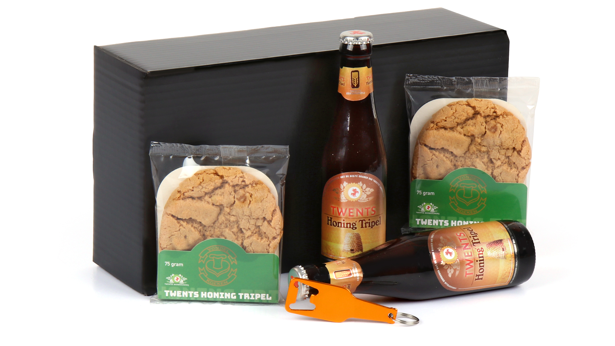 De echte verrassing zit in de twee vondelkoeken van 75 gram. Deze unieke koeken bevatten daadwerkelijk Twentse honing tripel bier en worden speciaal op bestelling gemaakt. Hierdoor ontvang je ze altijd vers in je pakket. De combinatie van bier en koek vormt een smaakduo dat je nergens anders vindt.
