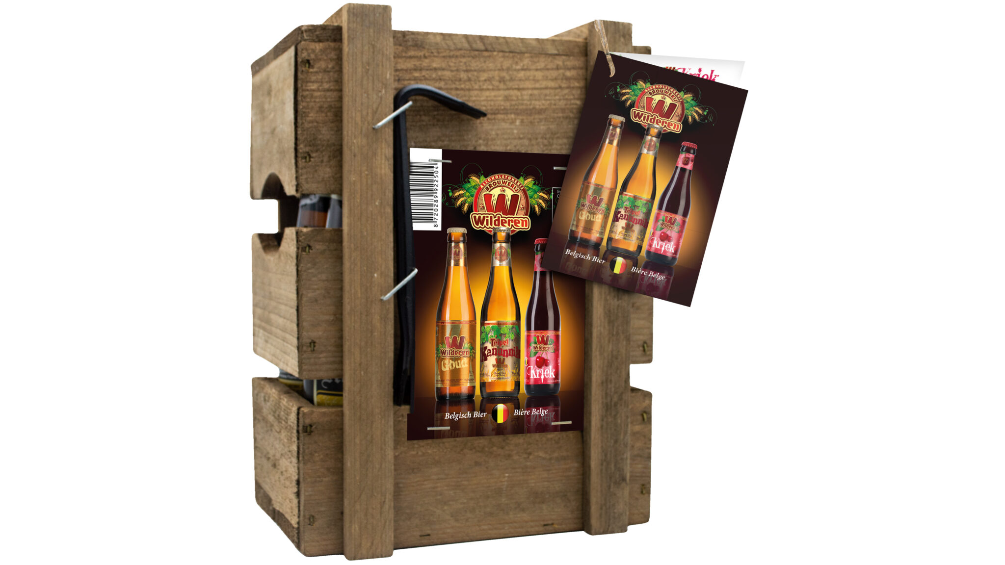 De Wilderen Bierbox is het ultieme kerstpakket voor bierliefhebbers die houden van een stoere verrassing. Dit eigentijdse pakket combineert drie bijzondere Belgische bieren in een robuuste houten kist die alleen met het meegeleverde breekijzer te openen is. Een spannende ervaring die direct zorgt voor een glimlach.