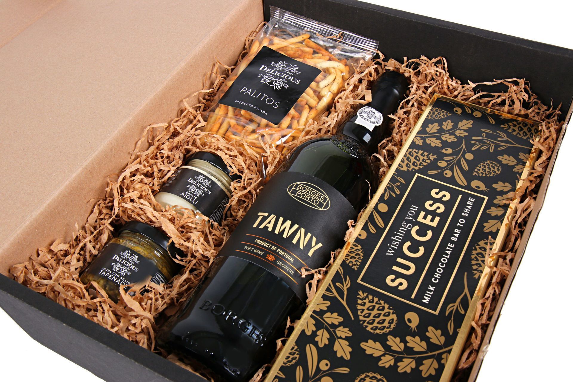 Het Wishing you succes Tawny geschenkpakket brengt smaak en kwaliteit samen in één stijlvolle presentatie. Dit zorgvuldig samengestelde pakket biedt de perfecte balans tussen zoet en hartig, ideaal voor het vieren van successen of als waardering voor collega’s en relaties.