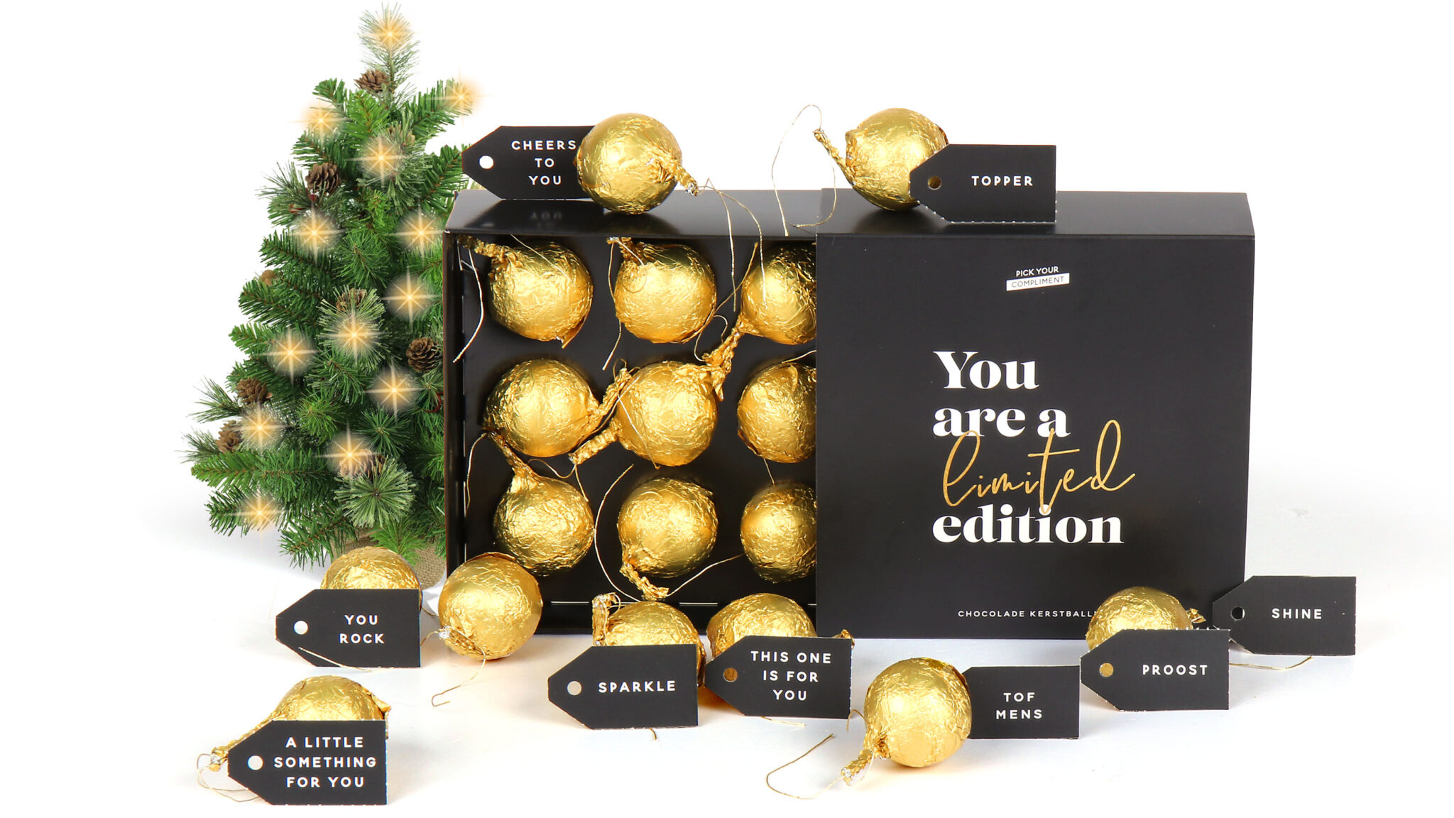 Het kerstpakket “You are a Limited Edition” brengt warme complimenten en premium chocolade samen in één stijlvolle giftbox. Dit unieke pakket is perfect voor iedereen die een bijzonder persoon wil verrassen met iets leuks onder de arm.