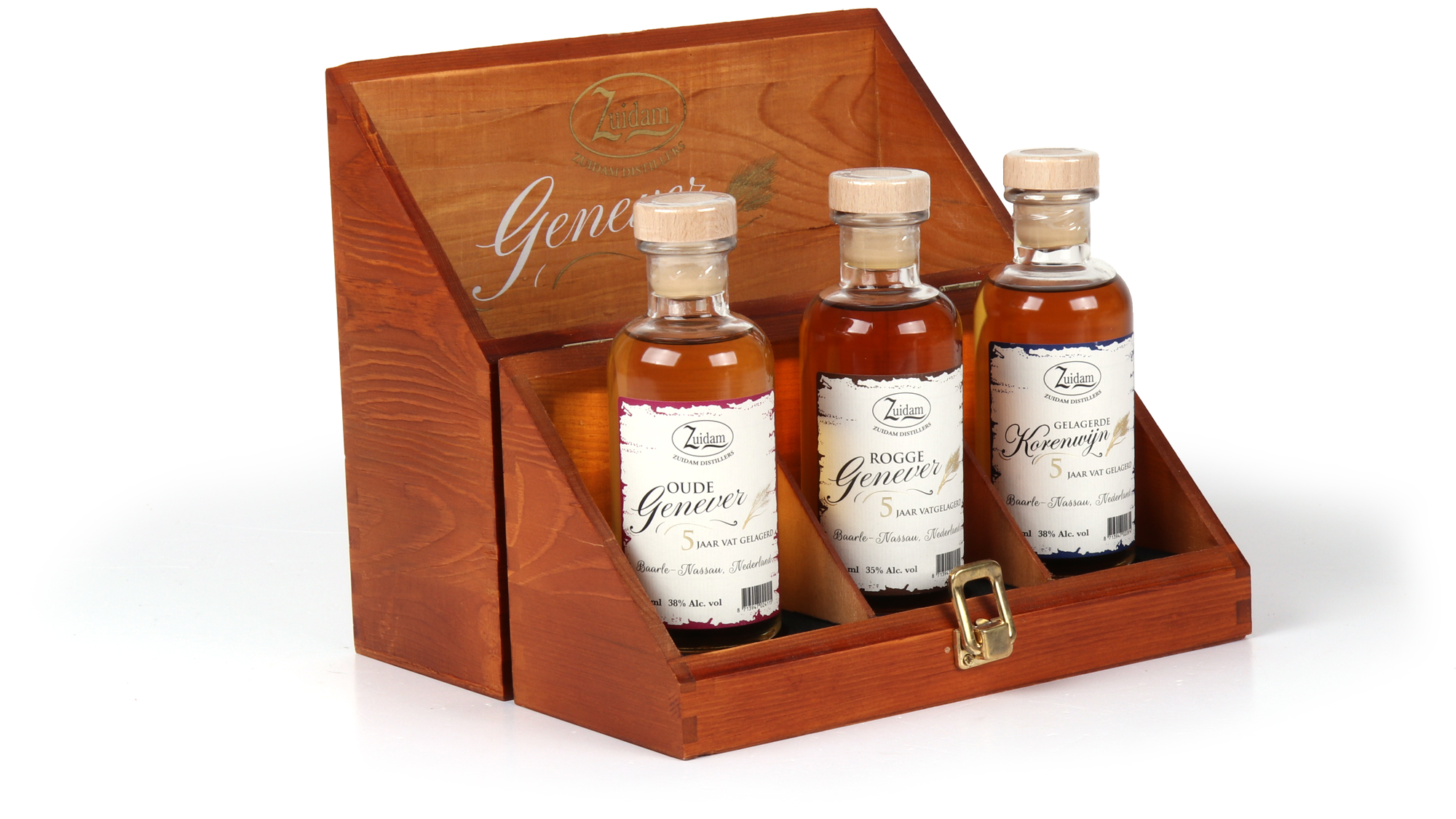 De set wordt geleverd in een elegante houten kist van Zuidam zelf. Dit maakt het een ideaal geschenk voor collega’s, zakenpartners of voor jezelf. Het trio laat je proeven van de rijke Nederlandse genevertraditie zonder dat je direct drie grote flessen hoeft aan te schaffen. Perfect voor wie wil ontdekken welke variant het best bij de eigen smaak past.