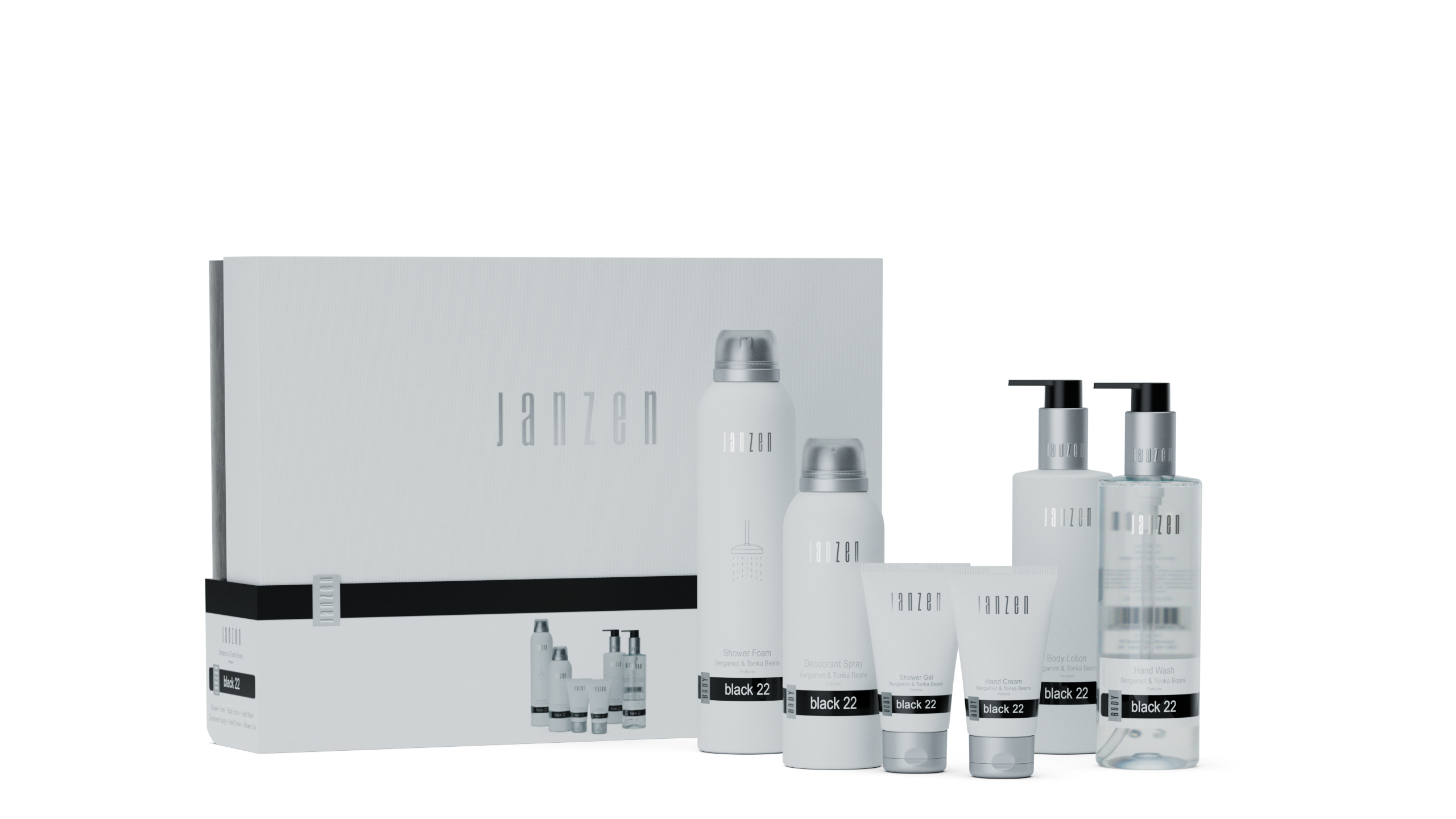 - Janzen black 22 Giftset - shower foam 200 ml - deodorant spray 150 ml - body lotion 250 ml - hand wash 250 ml - hand cream 40 ml - shower gel 40 ml
