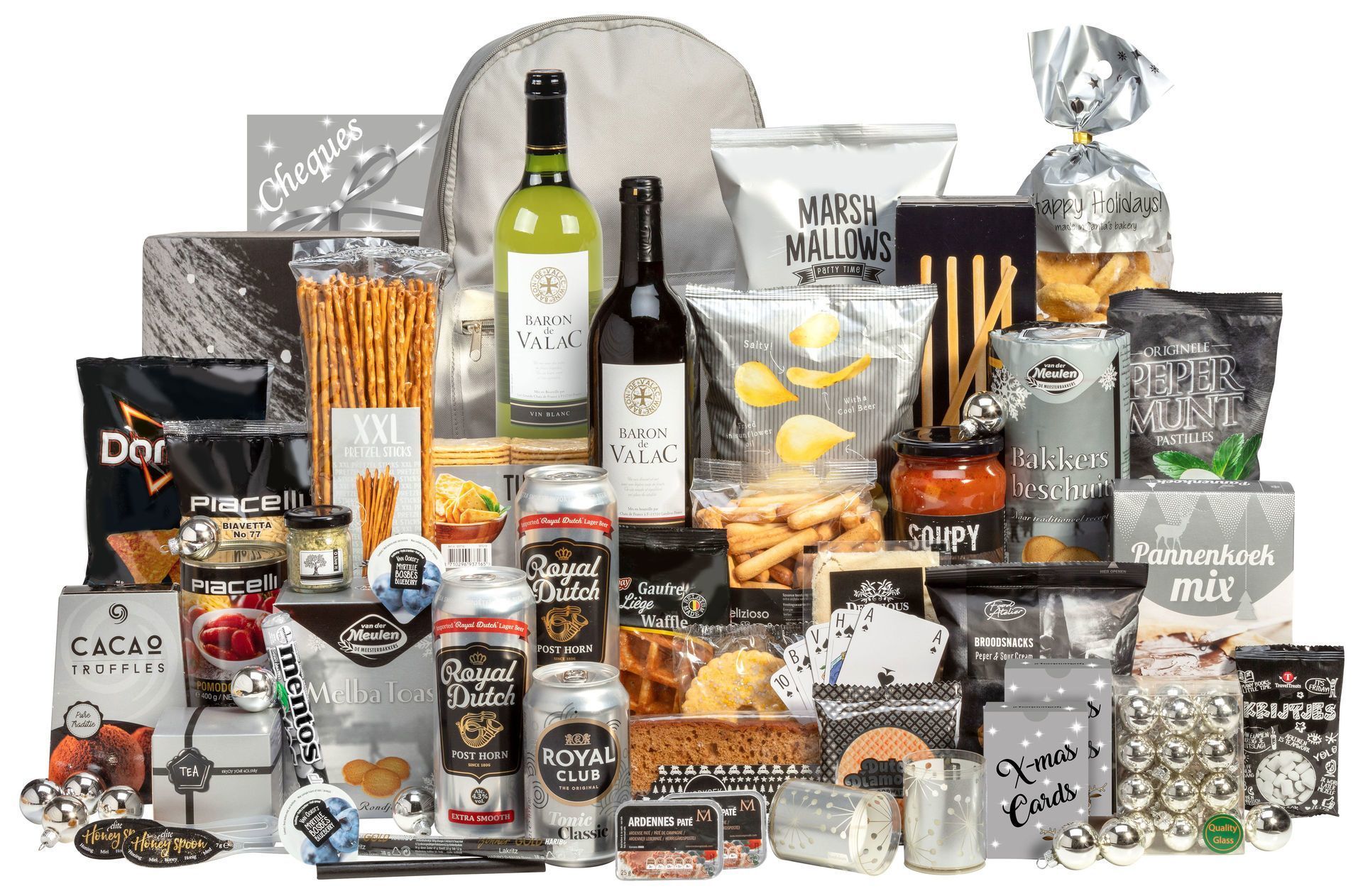 Met 30+ jaar ervaring weten wij wat een goed kerstpakket moet bevatten. Elk product wordt in onze eigen inpakcentrale zorgvuldig verpakt in een feestelijke doos. Je kunt al vanaf 1 stuk bestellen, perfect voor zowel persoonlijke geschenken als zakelijke doeleinden. De Zwart zilveren rugzak kanjer XXL staat garant voor een geslaagde kerst vol verrassingen.